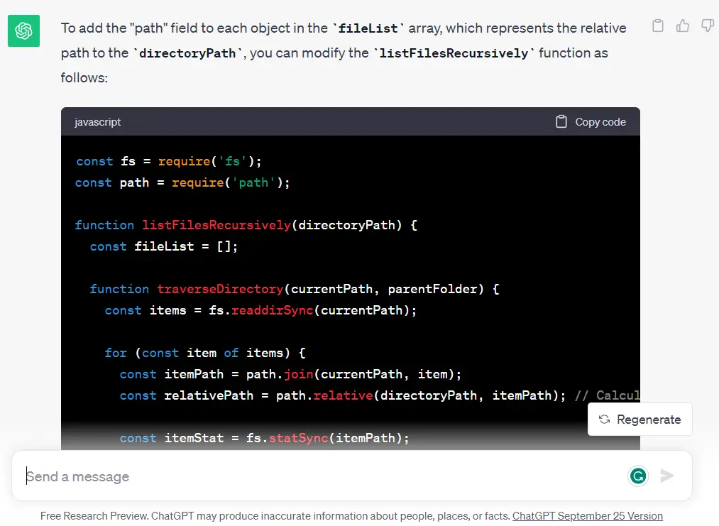 When working on this project, I was only starting to learn javascript. It was a lot harder to get used to as a Python programmer. ChatGPT saved me a lot of time like an experienced programmer helping a novice. The code used to read all files from one folder recursively and label it according to given rules were written by no other than chatGPT itself. This problem involves an understanding of useful function ('fs') and javascript object minipulation, which I'm not familiar with. What surprised me is the generative AI's ability to implement this with the context in mind, with little prompt needed. The code it generated can be plugged in my function directly with little or no change necessary.
